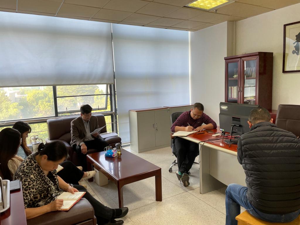 最后,周新生同志结合工作谈了个人学习的心得体会,传达了学校党委关于学习宣传贯彻党的十九届六中全会精神的要求及有关工作安排,强调在“学深悟透”上下功夫,学习好、宣传好,注重学以致用。要求会后全体人员自学领悟,并交流学习心得。